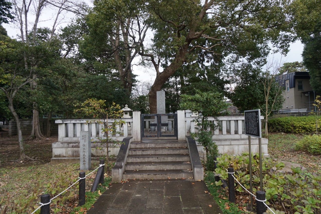 桂太郎墓は、若林公園の中。松陰神社に近い側で、周囲には石の柵が巡り、一段高い場所になっています。桂太郎は、三度の組閣をした内閣総理大臣。それにしては周りには何もなくてポツンとある寂しい場所なのですが、これは松陰神社に隣接するこの場所にという遺言によるもののようです。