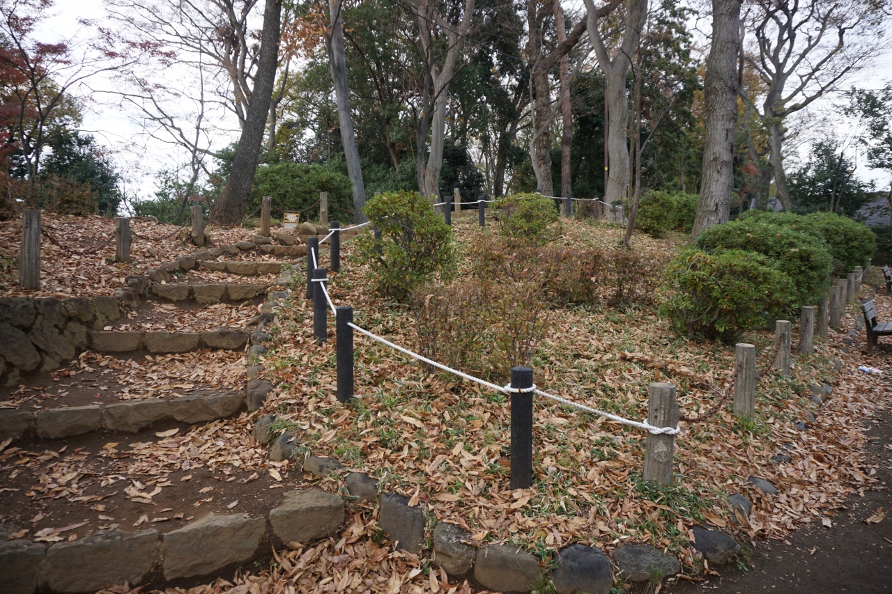 世田谷城阯公園は、かつての世田谷城を利用した公園。築山のような小ぶりの山に遊歩道をつけて巡るようにしたものなので、平地はほとんどありません。上っても、あっという間に頂上。ただ、周囲が住宅地として開発される中、これだけのものが残ったのはここを保存したいという地元の思いがあったから。公園としては限界があっても、それなりに大事な場所となっていることは間違いありません。