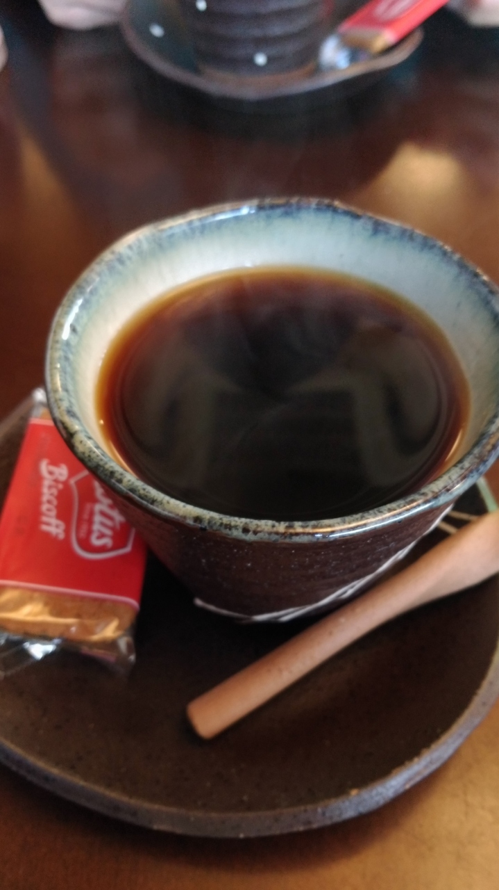 店内がそれほど広くなく、静かな雰囲気なので、チェーン店の喫茶店に比べてはるかに落ち着いてコーヒーが楽しめます。今日は、『今日のコーヒー モカ』を50引きの450円で頂きました。たっぷり入っていて、お菓子もつきます。お店はモーニングやランチもやっています。