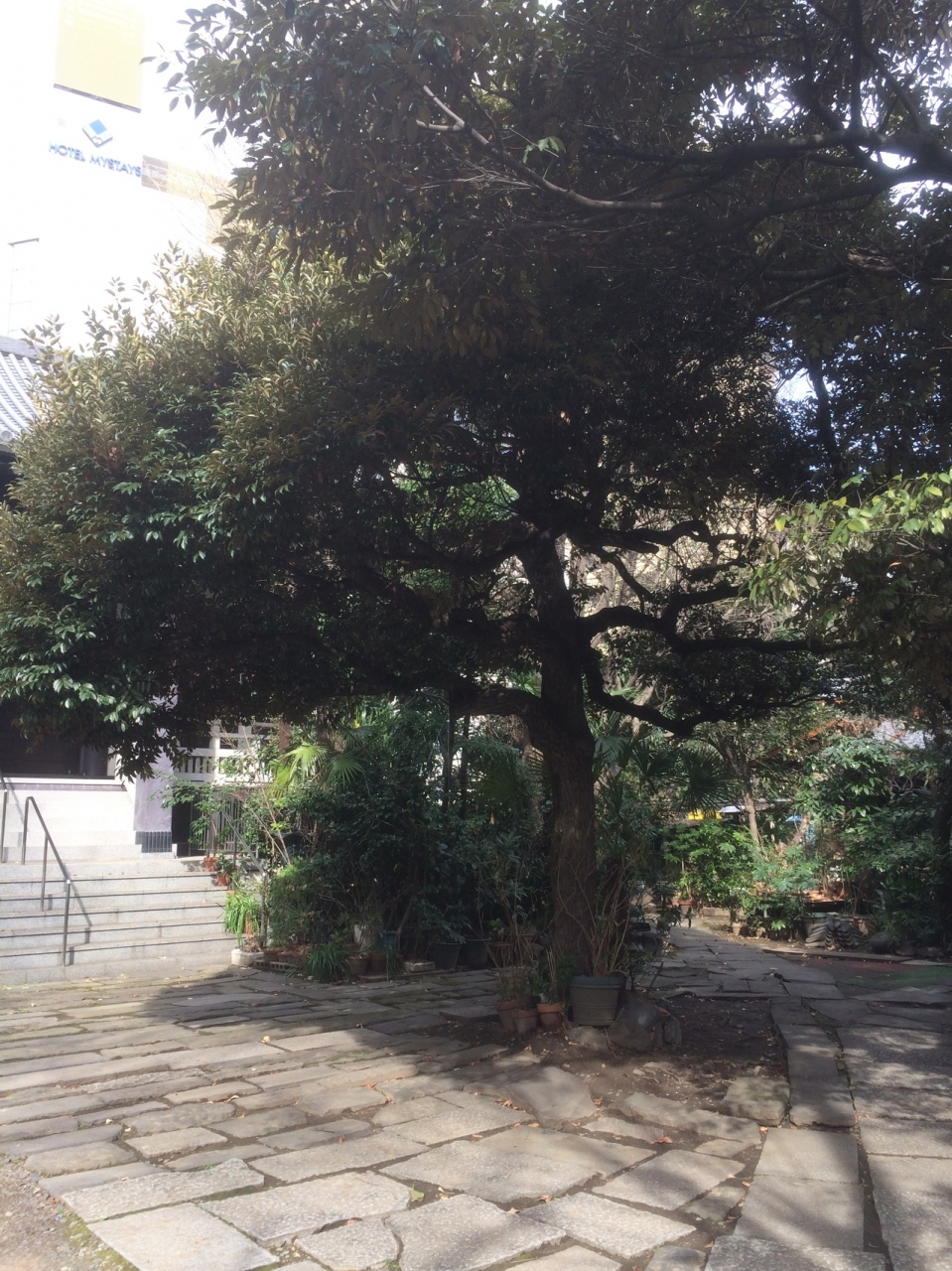 境内には入ると結構、木が茂っていて、南国にあるような木もありました。曹洞宗のお寺で山門はなく少し高い門でしたが、門からも本堂が木に隠れているような感じでした。本堂は、コンクリートで作られて寺ぽくなかったです。