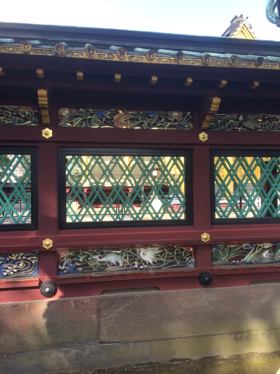 金色殿を四角に囲った塀で、屋根がついていて下には彫刻が施され、その下は緑色の網のようになっていて、その下も彫刻でした。それが四角で囲ってあるので物凄い長さでした。全面には、灯篭があり、芸術作品のようでした。