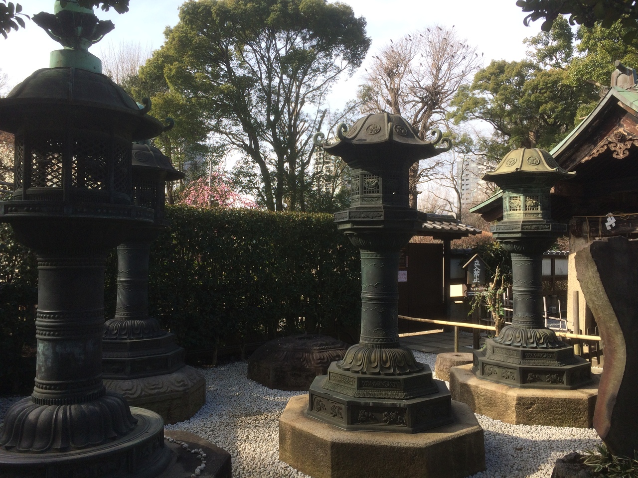 東照宮の参道を歩き、金色殿を囲む透塀、唐門ので前に灯篭がいくつかならび、見ただけで銅で出来ているのがわかります。高い細長い銅でどれも年季が入っていました。石の土台にのり、傘を被ったように見えました。少し色あせた感じが良かったです。
