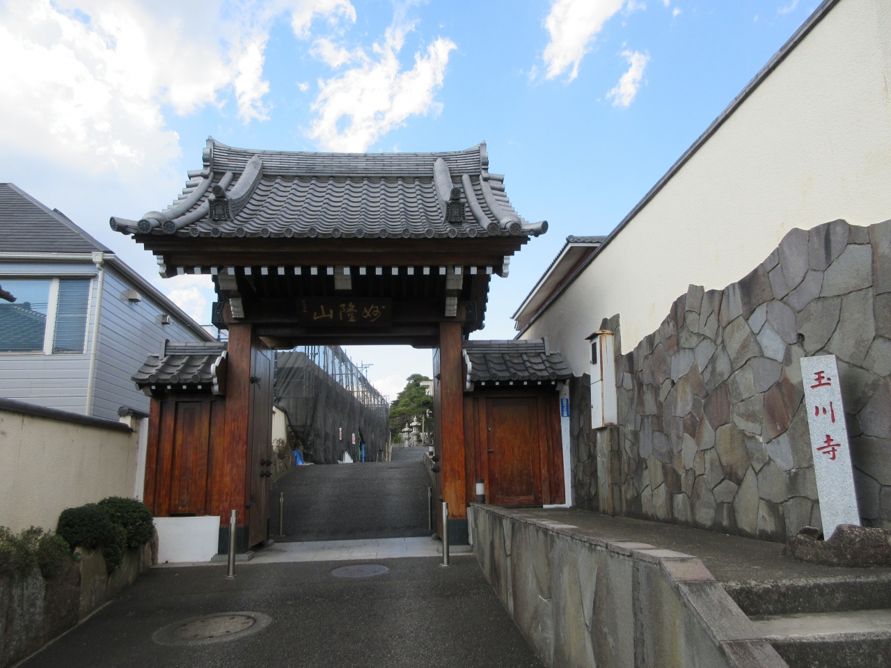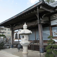 二子玉川駅から高島屋裏の商店街を北へ10分ほど歩いたところにある日蓮宗寺院です。身延山関東別院として1932年に現在地に移転しました。川沿いの国分寺崖線の中腹に建つ本堂は木造で、山門と本堂の間にある庭園にしだれ梅とボケが咲いていました。崖上のマンションとの境に竹が植えられていて境内に奥行きが出ていました。墓地は本堂横にあり、墓参の人を見かけました。保育園が併設されていて友人が十数年前に子供を預けていました。保育園は仏教行事を行いながらのびのびと育ててくれたと好評でした。地域に密着した寺です。