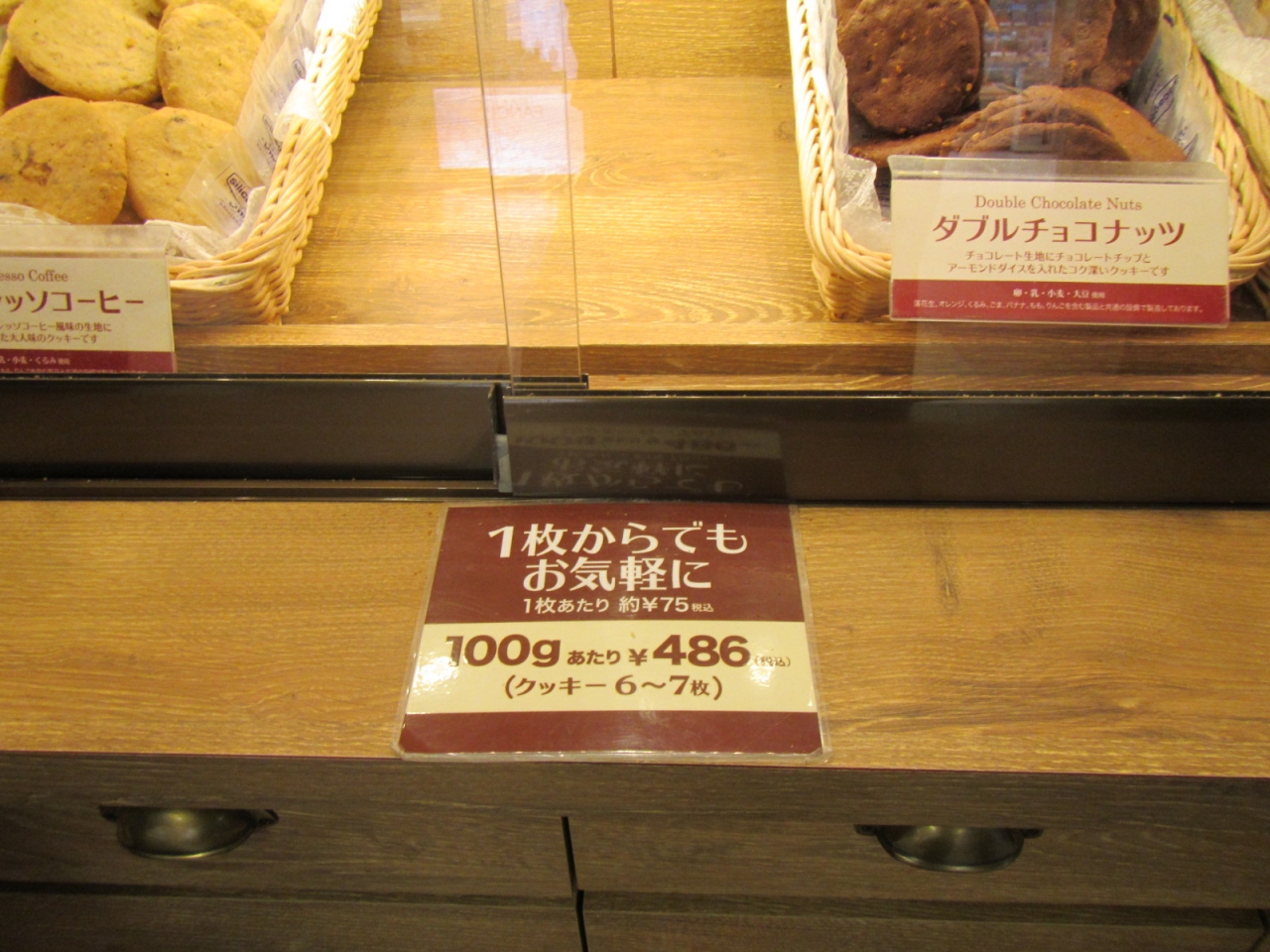 また、量り売りクッキーは6、7枚にあたる100gあたり¥486円で、毎月5のつく日か、9のつく日に訪れると、くじや詰め放題の簡単なイベントをやっているそうです。
