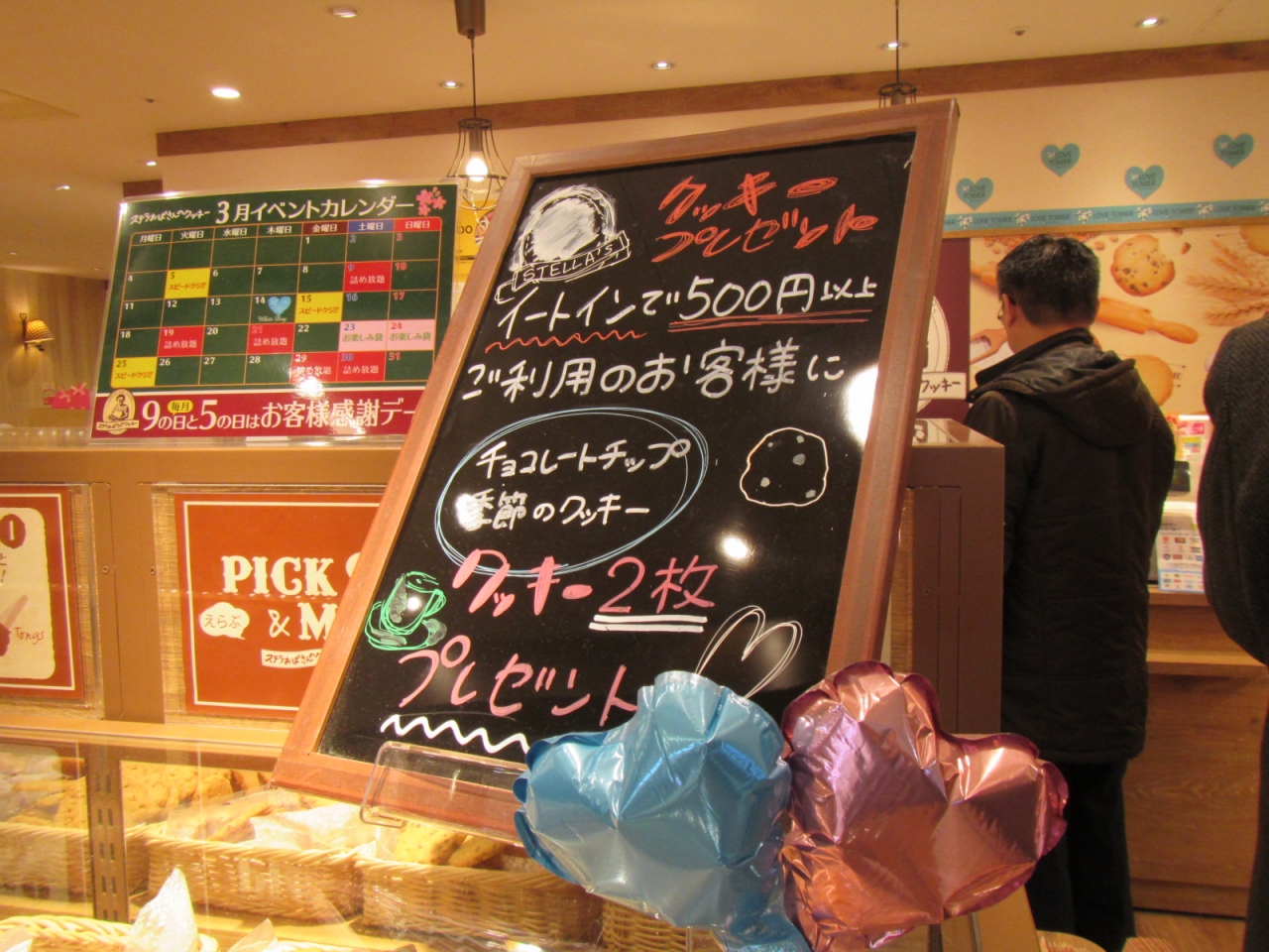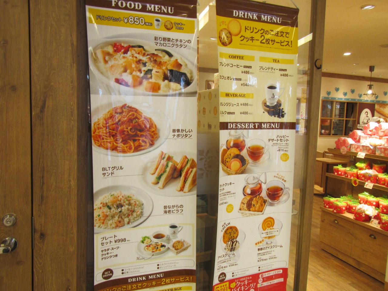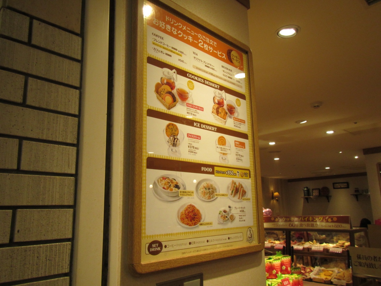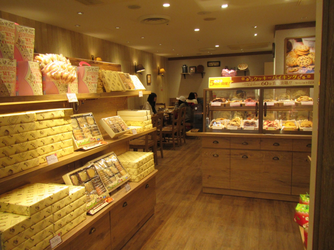 店内にあるカフェコーナーでは、10テーブル弱ほどの食事席があって、美味しいクッキーをその場でいただくことができ、毎月5のつく日は、60分¥880円で、クッキーバイキングが楽しめるようですが、クッキーのバイキングはちょっと自信ないな…(^_^;)。