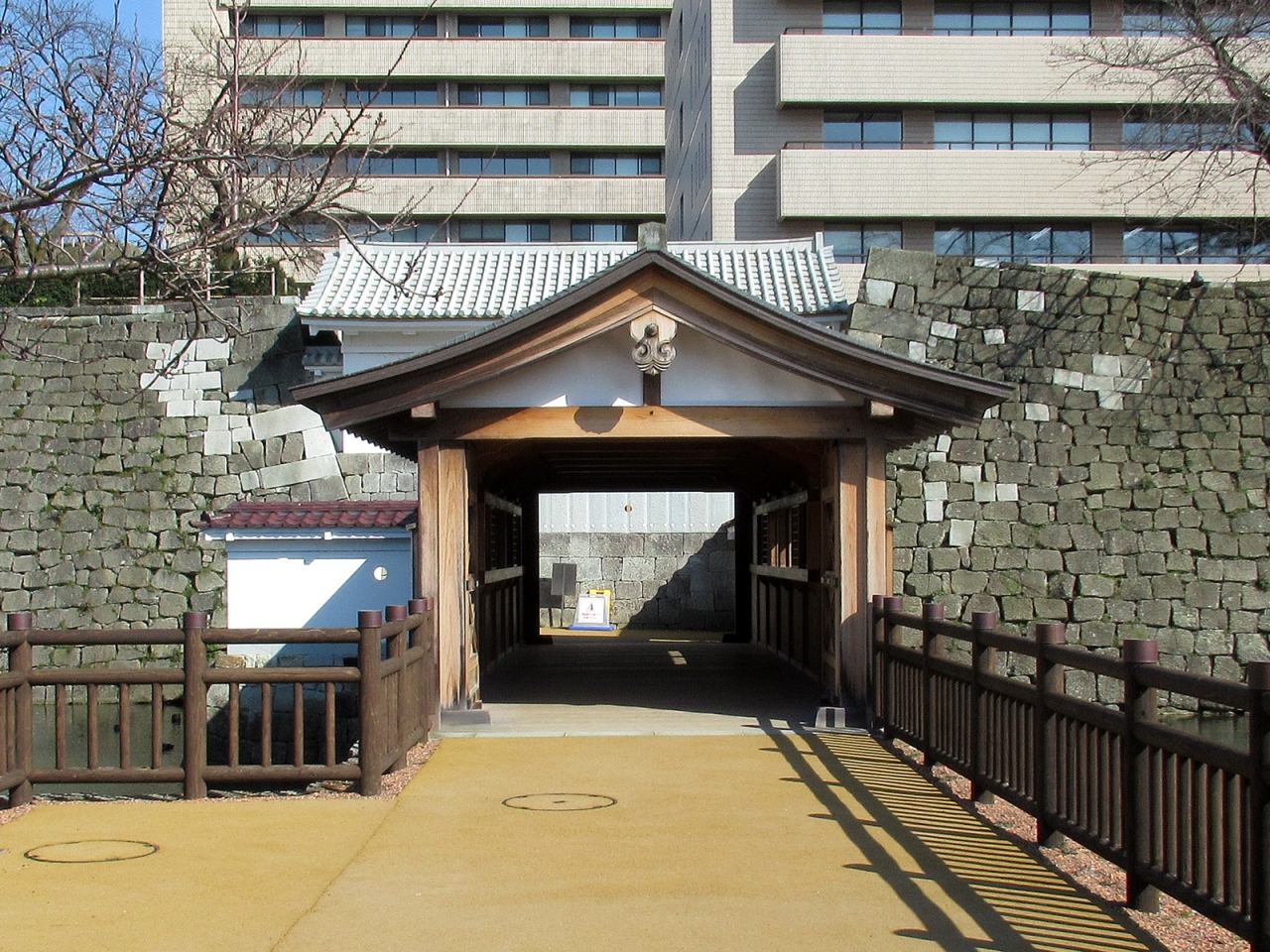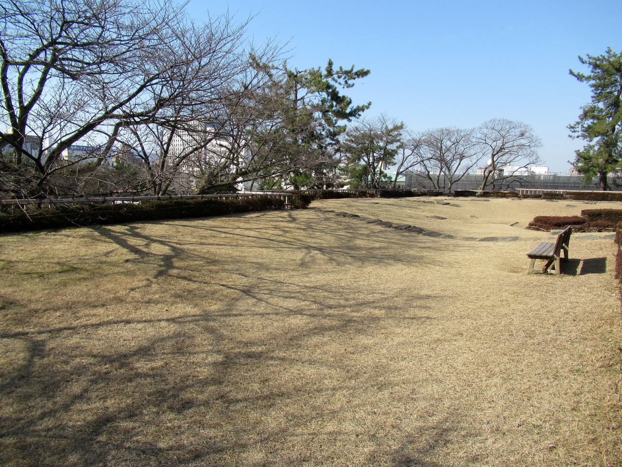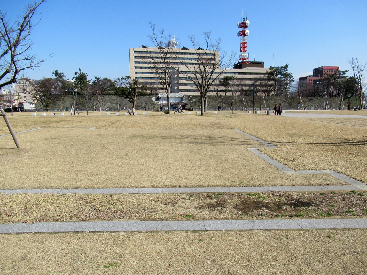 本丸の広さと立派な石垣、そして周囲の内堀だけを見ても、さすが越前68万石、往時はさぞかし壮麗な城郭であったことが容易に想像できます。復元された「御廊下橋」から「山里口御門」を通って天守台へ登ると、福井の語源となった「福の井」もあります。また「御廊下橋」側の美しい「中央公園」は西二ノ丸・西三ノ丸の跡で、笏谷石で堀が復元されていたり、藩主の御座所の間取りなどが表現されていました。
