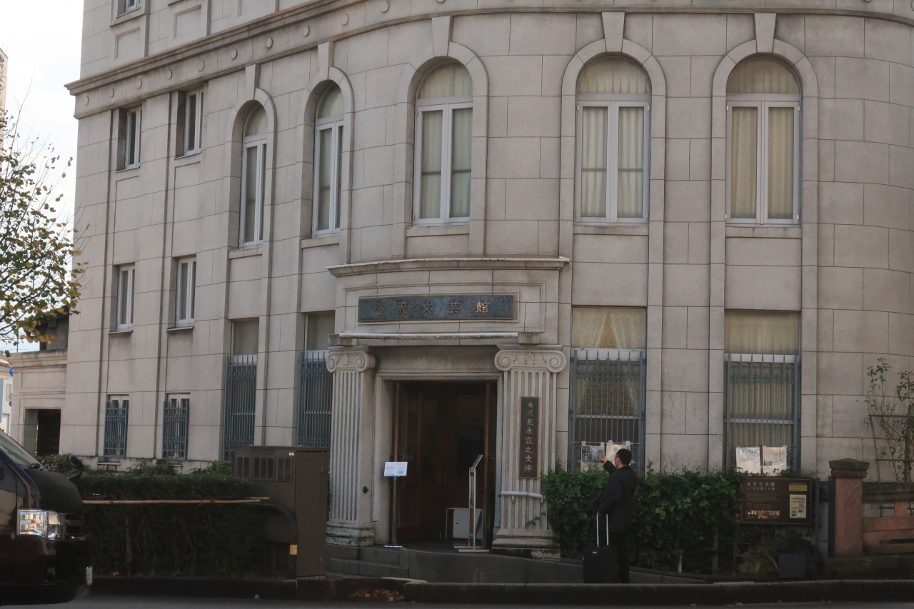 交差点に建つクラシカルな姿はいかにも周辺のランドマークという感じだ。1929(昭和4)年に建築された旧銀行建物を改修してオープンした施設。1階が交流の広場、2階が五木寛之の文庫、3階が現代金沢ゆかりの作家の本を集めている。こうした施設が都市の中心部で有料で成り立つということは、文壇バーではないが、文学に熱心な人が多い証左のような建物だ。調度品も一部銀行時代のものが活用されていて、雰囲気あるしつらえになっている。