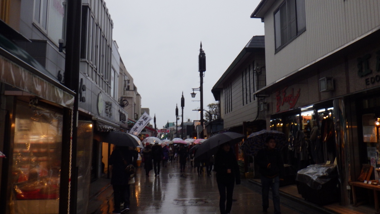 JR横須賀線鎌倉駅東口から50m程のところに朱色の鳥居に小町通りの額が掲げられているところから全長約600m、鶴岡八幡宮の表参道若宮大路と平行に伸びる通りです。