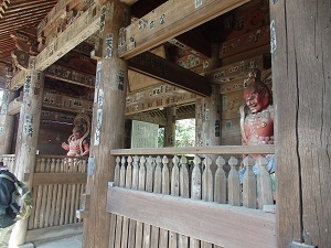 天台宗の一寺で創建は伝734年。光明皇后の御願いの寺で開山は行基。本尊は三体の十一面観世音菩薩。坂東および鎌倉33ケ所の第一番札所です。文化財は十一面観世音菩薩二体、県指定本堂、運慶作十一面観音等多くを有します。石段を登り山門を潜ると正面に苔むした石段、通行禁止なので、左手の石段を登ると正面に茅葺の本堂があります。本堂に入り、一番奥に秘仏本尊の十一面観世音菩薩(向かって中央が慈覚大師作、右が恵心僧都作、左が行基作)、本尊前立に頼朝寄進の十一面観音、毘沙門天像、地蔵菩薩像等多くの仏様を拝むことができました。本尊三体は暗くて見難かったです。秘仏なのに拝むことが出来るとはどういうことでしょうか?本堂を出て、右手には鐘楼、権現堂、弁天堂、地蔵尊、五輪塔群がります。本堂の屋根で、瓦や銅板葺きをよく見かけますが茅葺屋根は風情があっていいですね。鐘楼の傍には満開の紅梅が咲いており綺麗でした