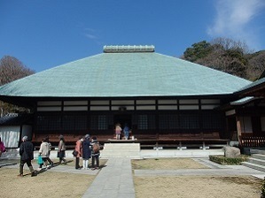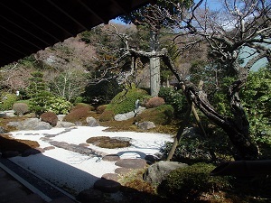 臨済宗建長寺派の一寺。鎌倉五山第五位。 1188年創建。 開基は頼朝の臣下足利義兼、開山は退耕行勇。本尊は釈迦如来。文化財は 国重文 木造退耕行勇坐像他、釈迦如来像、阿弥陀如来像等を有する。伽藍は総門、本堂、客殿、庫裏等。境内には足利貞氏(尊氏の父)の墓がある。喜泉庵の前には見ごたえのある枯山水庭園があります。境内には野花を見ることができ、5年前に来た時はセツブンソウ、福寿草等を見ましたが、今回はユキワリイチゲ、福寿草1輪、ヒトリシズカを見ました。ここに来て、野花を見るのが楽しみの一つです。寺の一番奥に石窯ガアデンテラスというレストランがあり石窯で焼いた焼きたてのパンが食べられます
