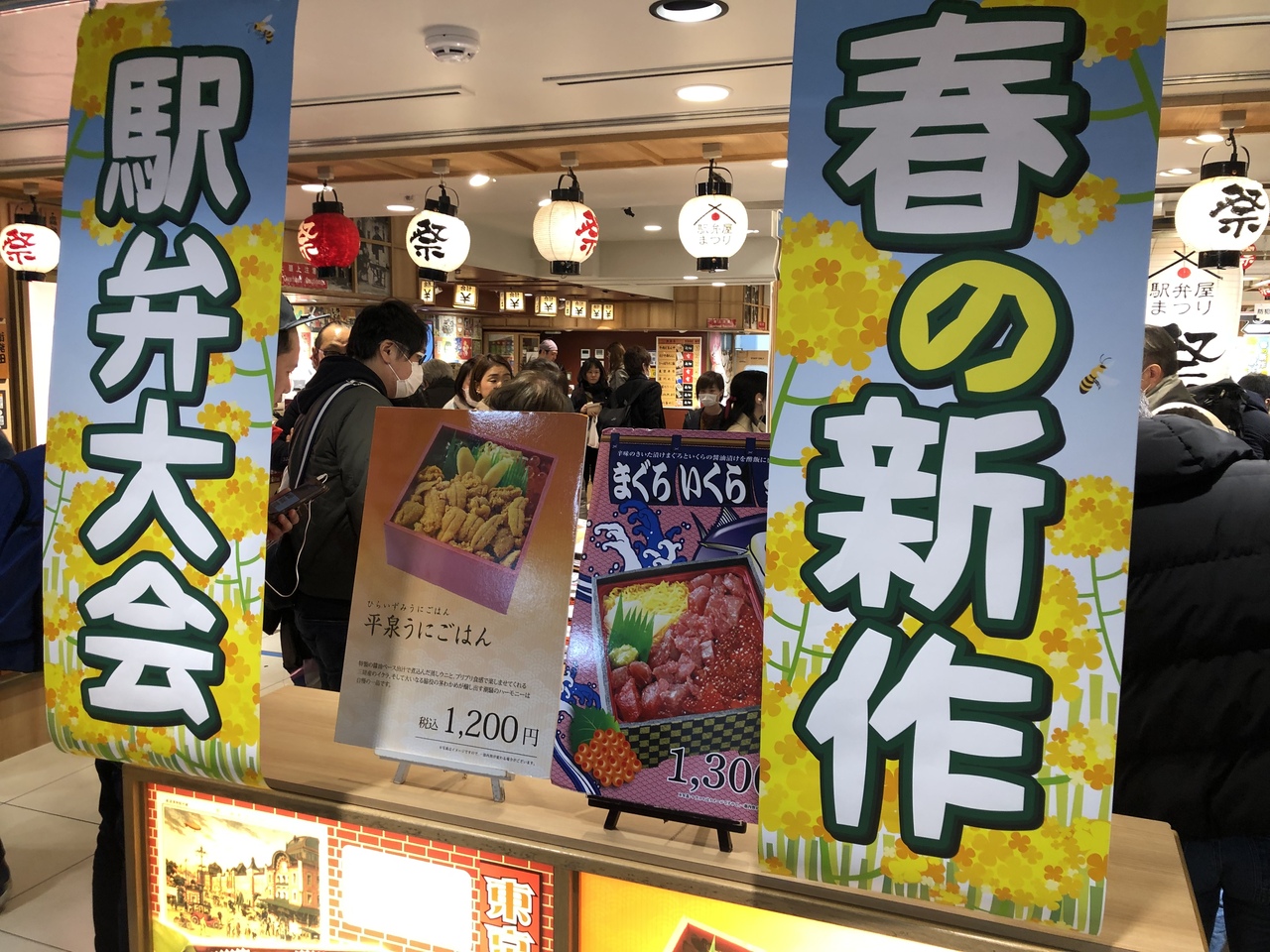 今日も沢山のお弁当とお客さんでごった返していました。新幹線の改札の外なので注意がひつようです。