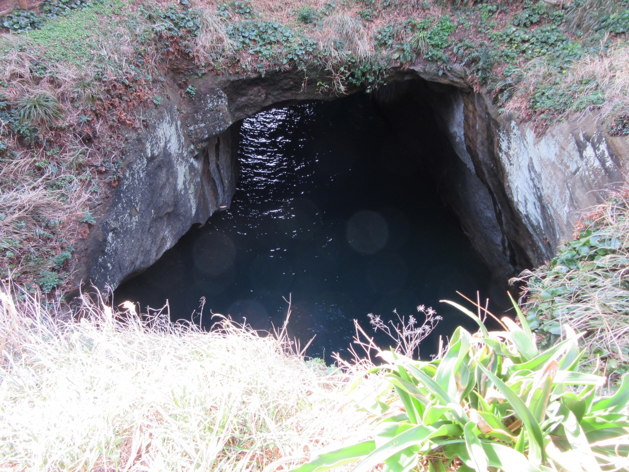 また散策路から見た場合ぽっかりと空いた穴に海が広がり、不思議な光景となっています。