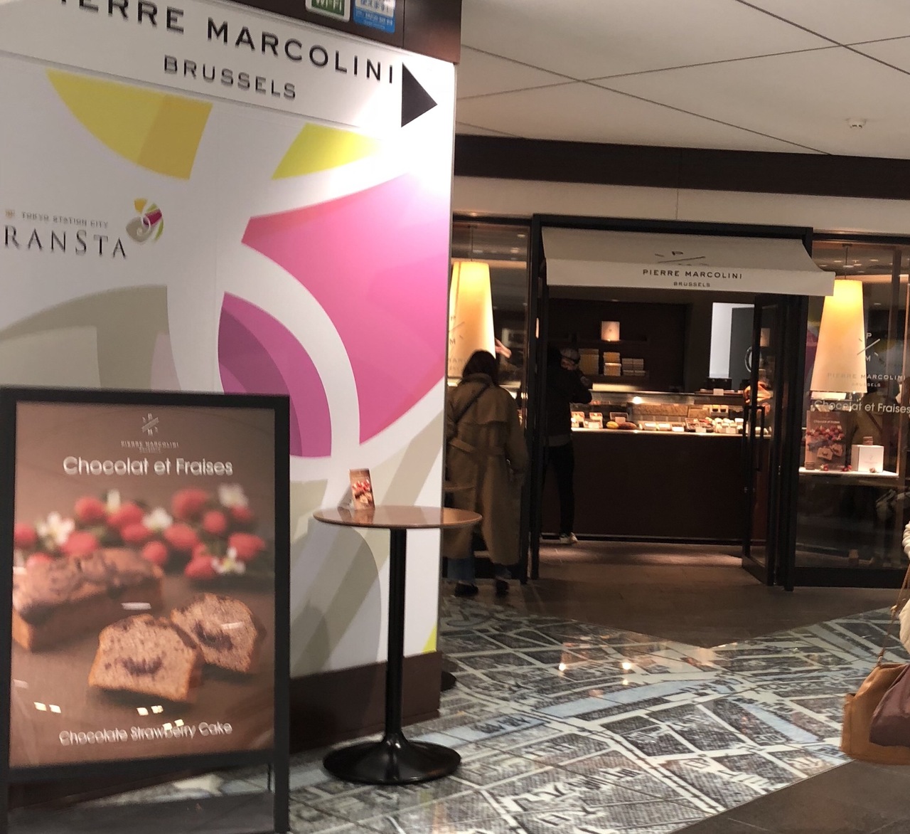 東京駅の有名な待ち合わせスポット、銀の鈴の広場に面してピエール・マルコリーニがあります。広場にはたいてい人がたくさんいるので、逆に奥まって目立たないかも。
