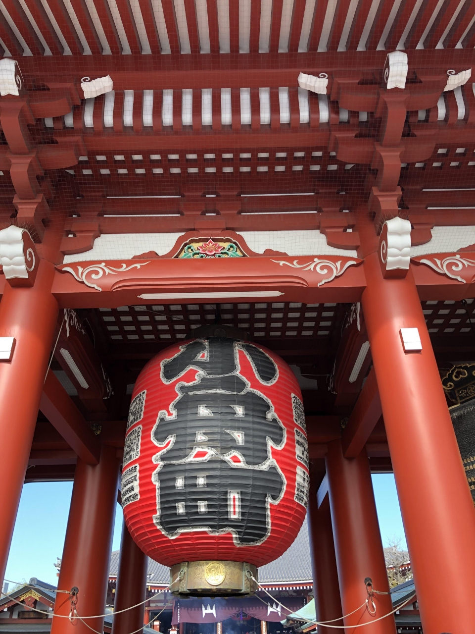 雷門を抜けて仲見世通りを進むと浅草寺があります。以前よりもさらに外国人観光客が増えたような気がしますが、仲見世通りもずっと混んでいました。12月中旬だったので、お正月の羽子板などを売る露店も宝蔵門前に出ていました。五重の塔も改めて美しい建造物だなと思いました。