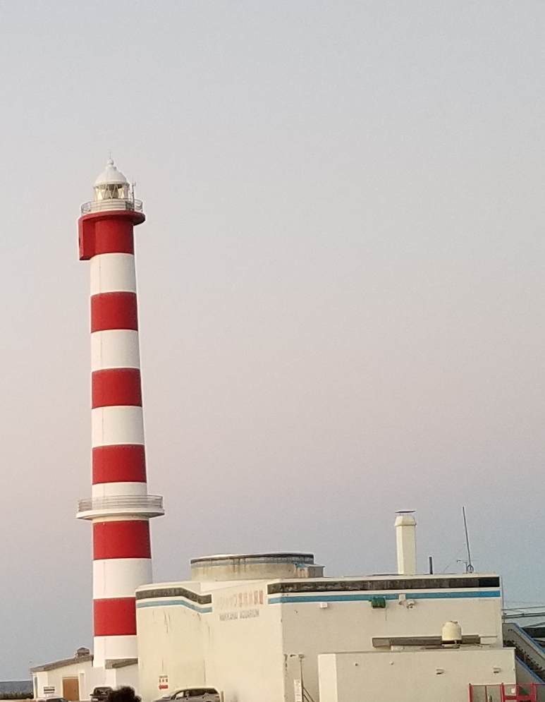 稚内灯台は、ノシャップ岬にあり高さは40m以上あり道内で1番の高さがあります。1900年に丘陵地帯に作られましたがその後米軍基地に変わり、今の場所に移されたそうです。紅白ストライプが特徴的で、岬展望スペースのイルカのモニュメントとのコラボが印象的でした。