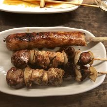 つくねは美味、レバは角状で歯応えあり、鳥肝も歯応えあり。