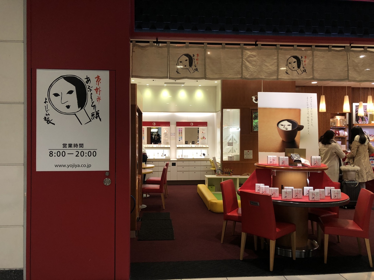 羽田の国内線第1ターミナルにあるよーじやさん。国内の移動の場合は朝早い便のことが多いのでだいたい閉まっているのですが、今回はゆっくり便だったのでお店を覗くことができました。いろんなバージョンがありますが、やはり昔ながらのあぶらとり紙が一番です。
