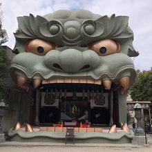 大通りから少し中に入った場所にありますが、なんといっても鳥居からみえる獅子頭がとにかく大きい。本殿自体が大きな獅子頭の形をしていて、かならりインパクトがあります。