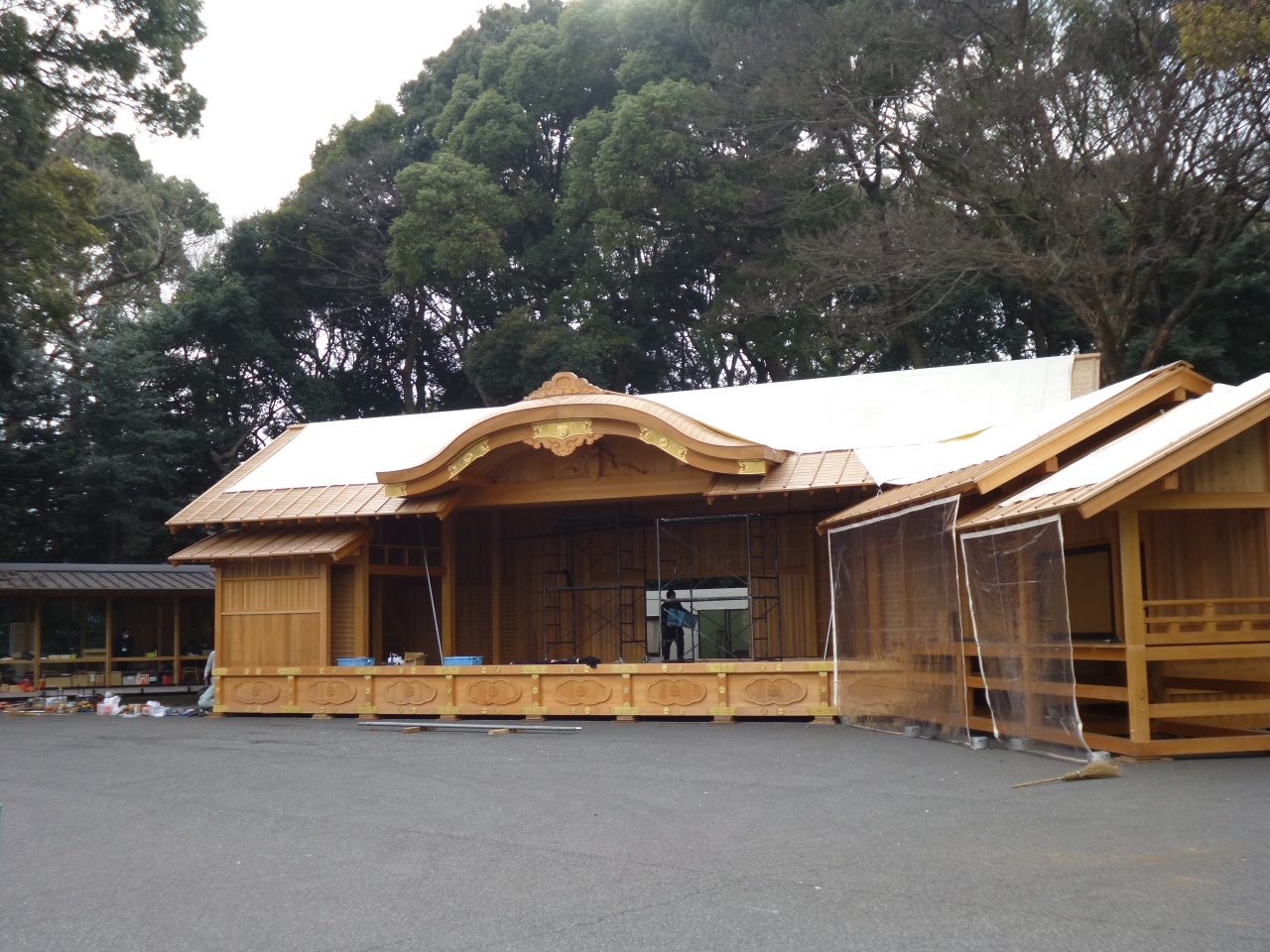 久しぶりに足を運んだ明治神宮は、平日の午後にも関わらず、外国人観光客を中心に参拝客の姿が数多く見かけられました。広い境内の一画には新しい建物が建設されていました。文楽のための舞台のようですが、今から完成後の姿が楽しみです。