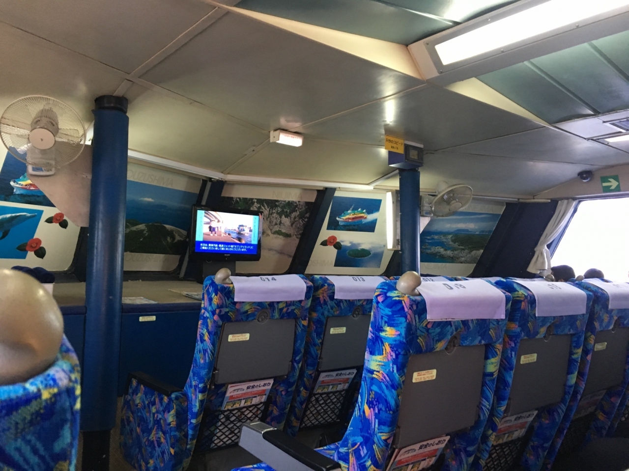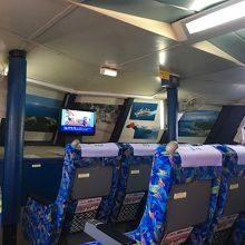 竹芝桟橋から伊豆大島に行く時に利用しました。二階建てのジェット船でした。中は狭いです。基本ベルト着用で、外には出れません。スペースは飛行機くらいです。船旅は1時間半くらいでした。あまり揺れなくて快適でした。