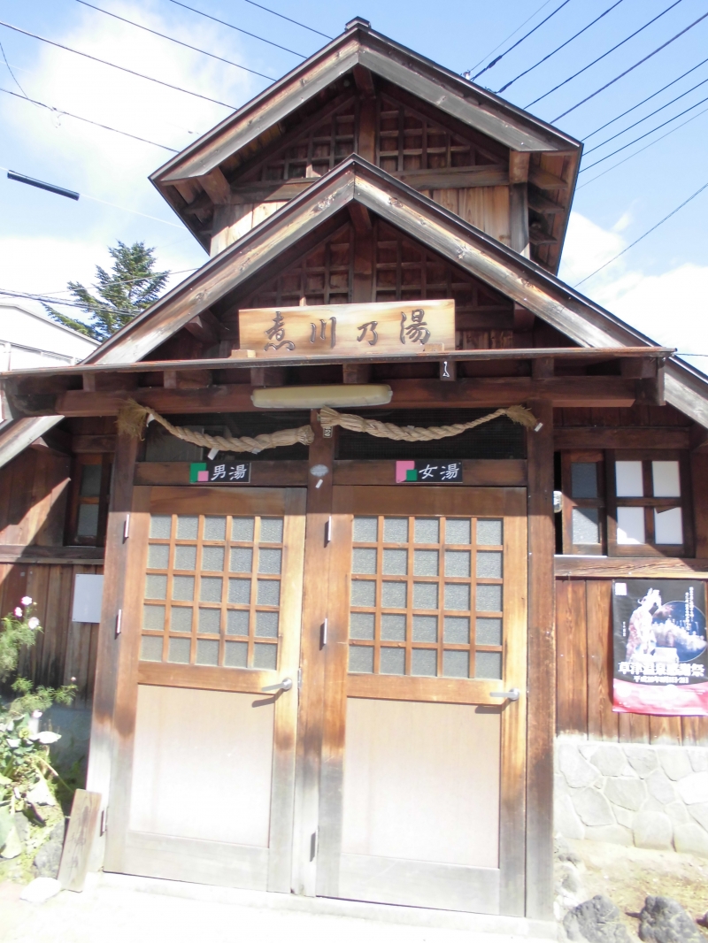 先客さんが1人いらして「ここは人が来ないから」と言われていました。確かにここと千代の湯は穴場のようです。煮川の湯は草津のタウンマップには載せられておらず、この前を素通りして、大滝の湯へ向かう人達が多かったです。位置的には地蔵湯前の1本道をまっすぐ、突き当り左斜め前にある三角屋根の湯小屋です。