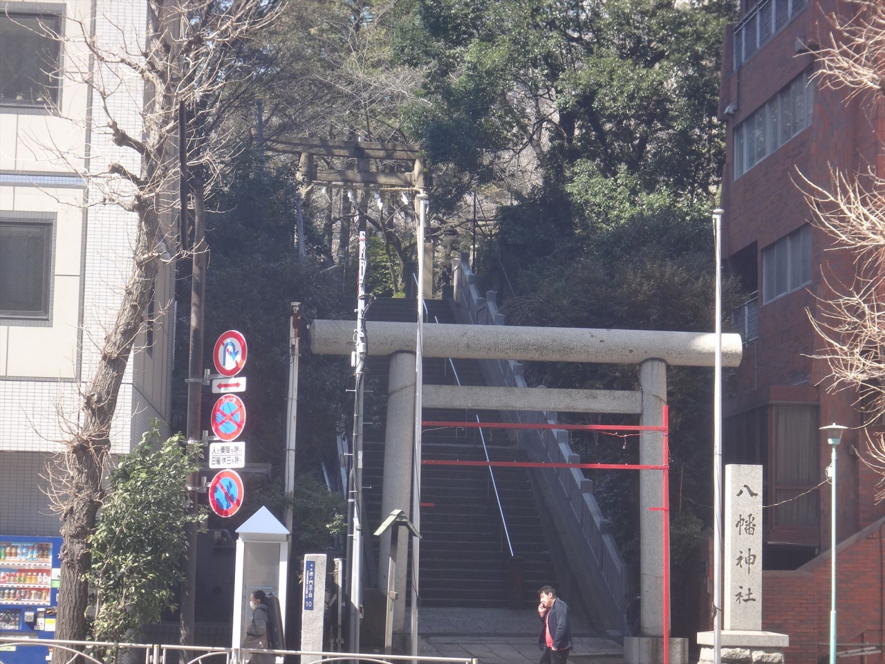 神社といっても鳥居と石の階段があるだけで、ほとんど中身がない神社です。名前も八幡神社となってはいますが、いわゆる八幡さんと名のつく大量の神社の中ではかなり小さいほうで、特にこれといったものがお供えされてるというわけでもなさそうです。
