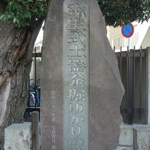 東京メトロ根津駅の1番出口を出て、隣のドラッグストアの角を右に曲がって弥生坂を上がると、道の左側、東京大学浅野キャンパスの端に石碑が立っています。但し、石碑だけです。