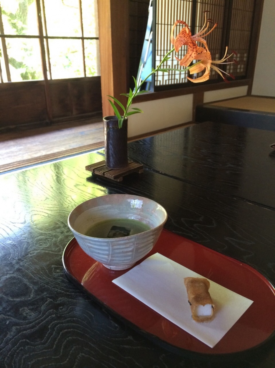 暑い日でしたので長府毛利邸で涼むことにしました。涼むと言ってもクーラーが効いているわけではありませんが、昔の家は不思議と風が通り涼しいのです。毛利邸も風が通って気持ちよかったです。抹茶と和菓子をいただきながは、俳句が自由に書けるので、思い出に一句残してみてはいかがでしょうか。毛利邸は広く見応えがありました。