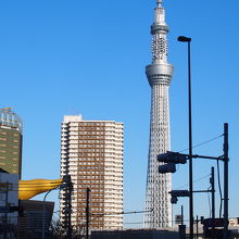 浅草寺に出かけた時に、浅草駅を降りて、隅田川の方を見ると東京スカイツリーが見えました。スカイツリーと浅草はだいぶ距離が離れていますが、幸い周囲には高い建物がないのもあり、圧倒する高さと、垂直に天へと上る鉄骨の姿は見ごたえがありました。
