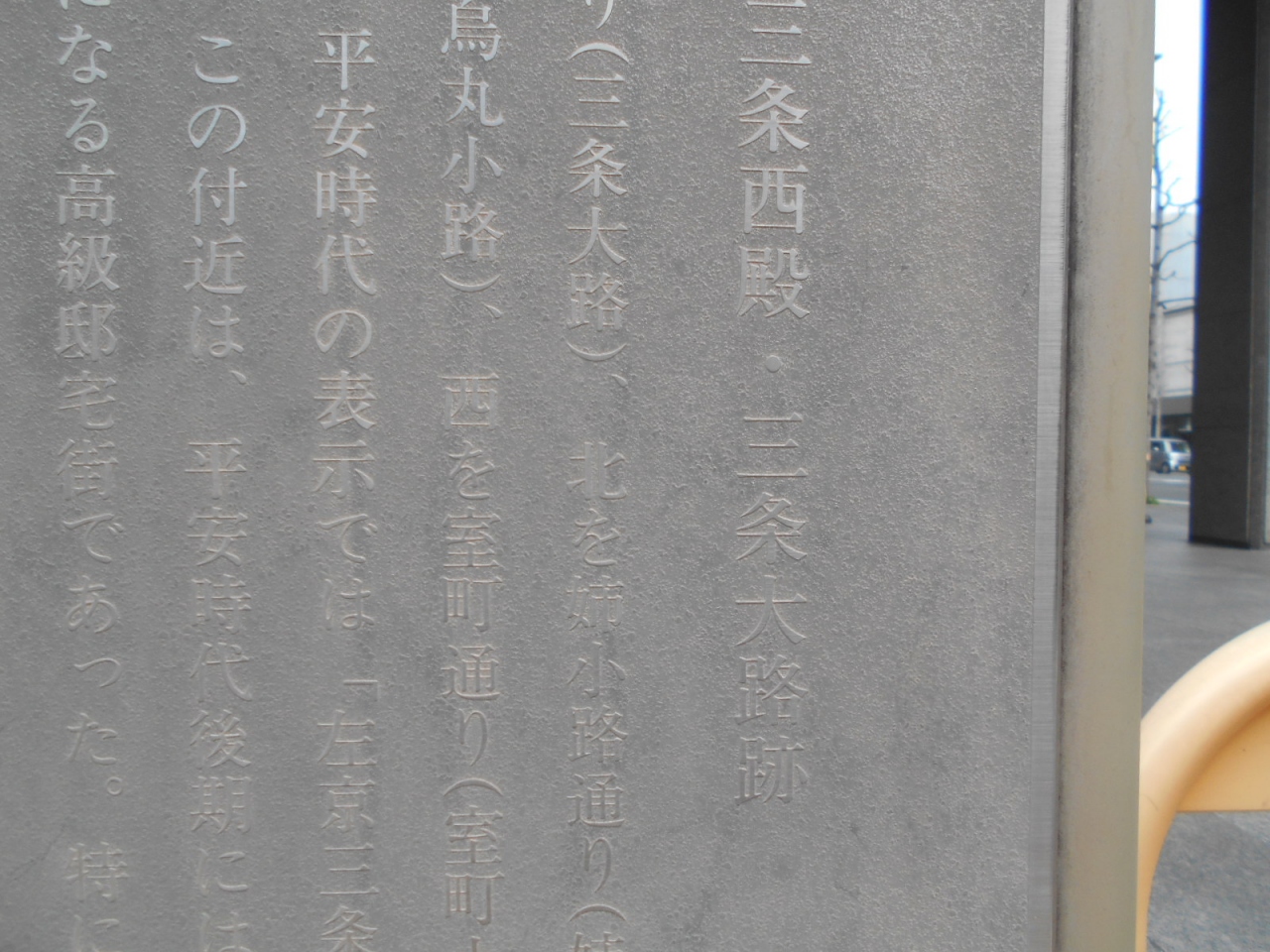 三条通のスターバックスが1階に入るビルの壁に大きめの説明文があります。でも色が薄くて読みづらく、気が付く人はほぼいないのではというかんじでした。説明文によると平安時代後期、この辺りは高級邸宅街だったそうです。大昔からこのあたりは人が集まる人気エリアなんだなと感じました。