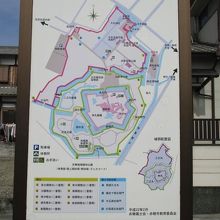 武家屋敷跡は門のみですが内部が部屋の形に区切られて芝生が植えられてるので部屋の大きさや配置がよくわかります。