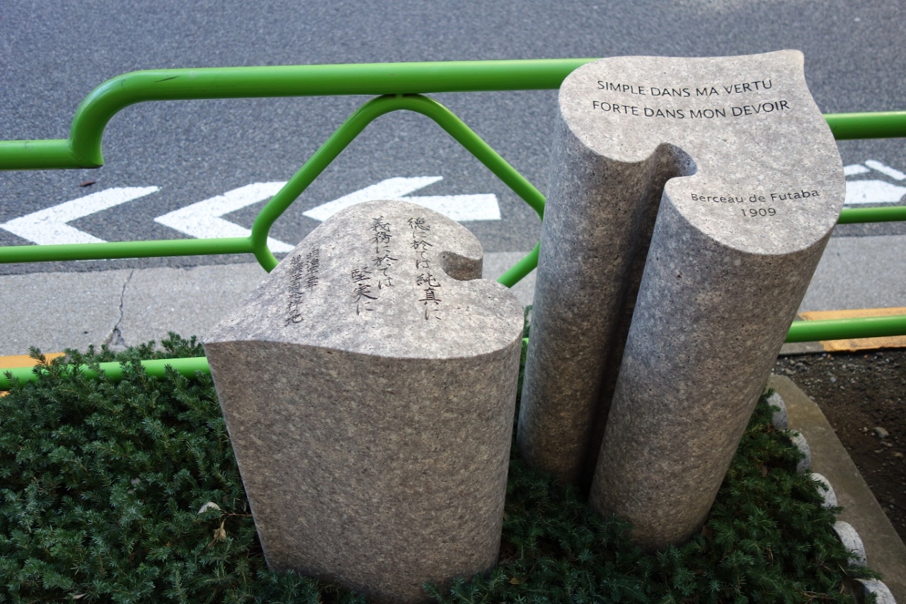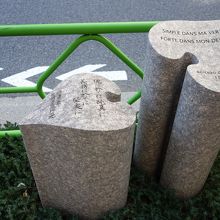 築地や月島あたりのエリアを散策中こちらのモニュメントを見学しました。外国人居留地が有ったことで知られる明石町の居留地中央通り沿いに二つの葉を組み合わせたデザインの素敵な石碑が置かれていました。センスの良いモニュメントが記憶に残りました。