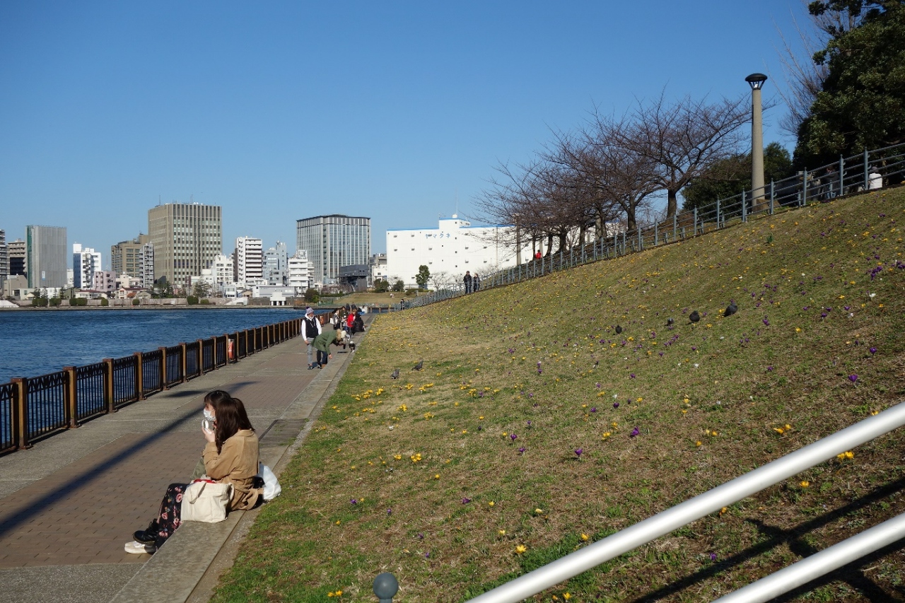築地や月島あたりのエリアを散策中、隅田川沿いをウォーキングしたり船で移動したりしながら楽しみました。この日は良く晴れていて特に石川島公園から見る隅田川のゆっくりした流れと都会の景色、それに青空の景色が美しかったです。
