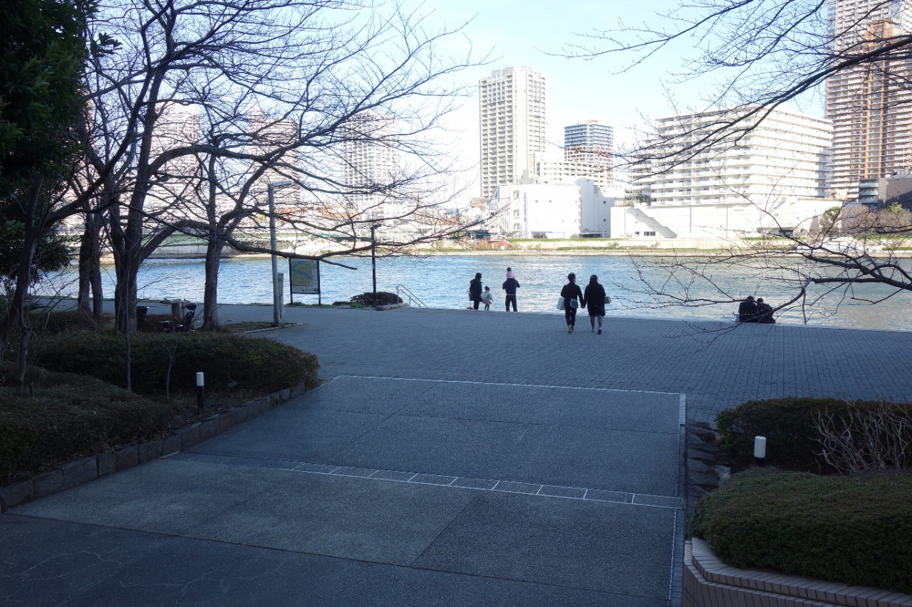 築地や月島あたりのエリアを散策中こちらの公園を訪れました。聖路加ガーデンへ立ち寄った際にツインタワーの敷地を隅田川の方へ出ていくと、そばにこちらの公園が有ったので一休みしました。背後に高いビル、目の前に川の流れと言う都会の中のオアシス的な場所でした。