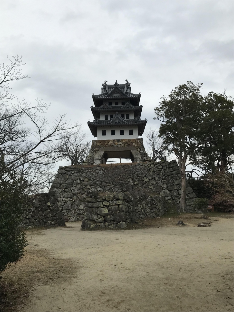 洲本の市街地の南にそびえる標高133ⅿの三熊山山上に洲本城跡があり、山頂には展望台として整備された可愛らしい日本最古の模擬天守(昭和3年築)が建っている。残念ながら、現在は天守閣には入れない。