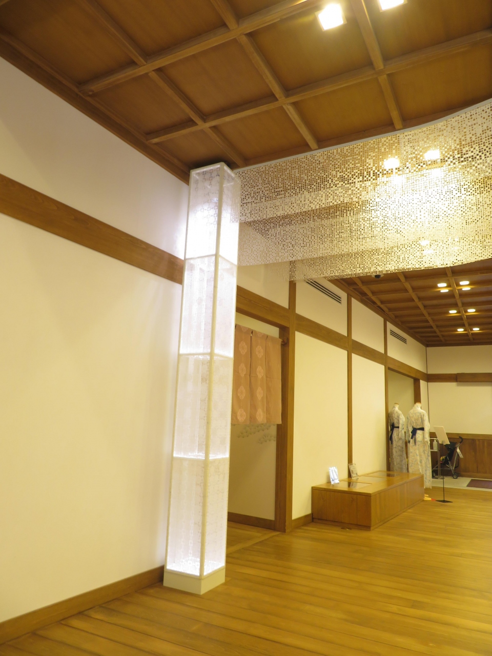 内湯の壁画が30分ごとに風景のスクリーン上映をして、みながらの入浴も気もちいいです。小さいながら露天もあってくつろげました。
