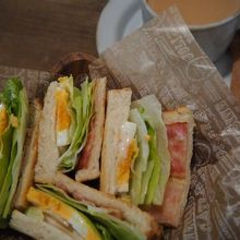 通常、BLTというと、ベーコン、レタス、トマトだが、当店ではベーコン、レタス、玉子となる。ミックスサンドというか、クラブハウスサンドっぽい、と言われればそうかも。
