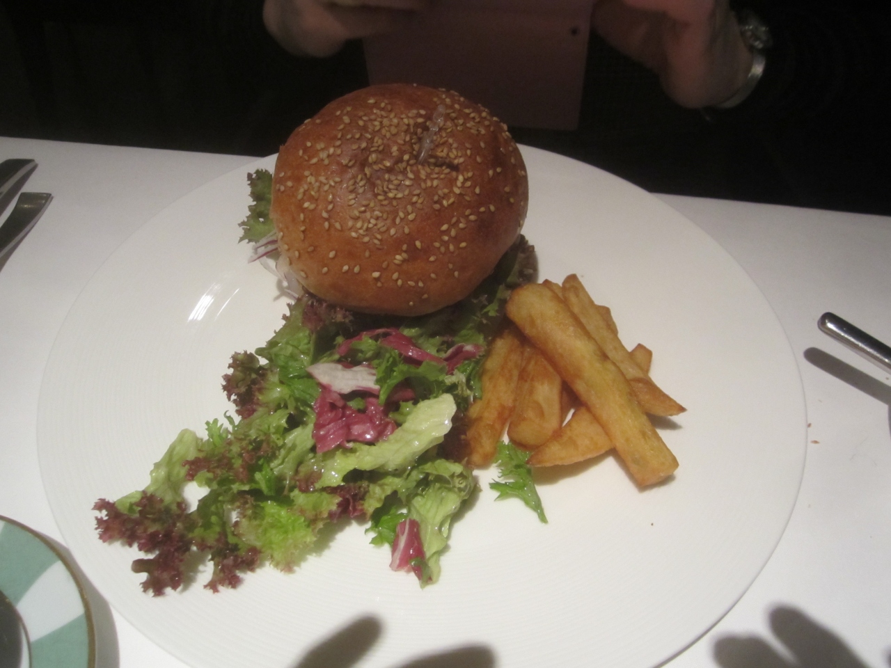 どの料理も凝っていて、美味しくただけました。ちょっと残念だったのは、客数に対して料理人の数が少ないこと。注文して前菜が出てくるまで30分近くかかり、パンをお代わりすることになりました。おまけに彼女のメインはフォアグラバーガーで更にパンが付いてきたので、お腹いっぱいに。こちらの要望にこたえてくれたのは良かったのですが、隣のテーブルのコースを追い越したようで、隣のテーブルでも待ちくたびれた風情のお客さんも居ました。食事をタイムリーに提供することも重要なサービスです。