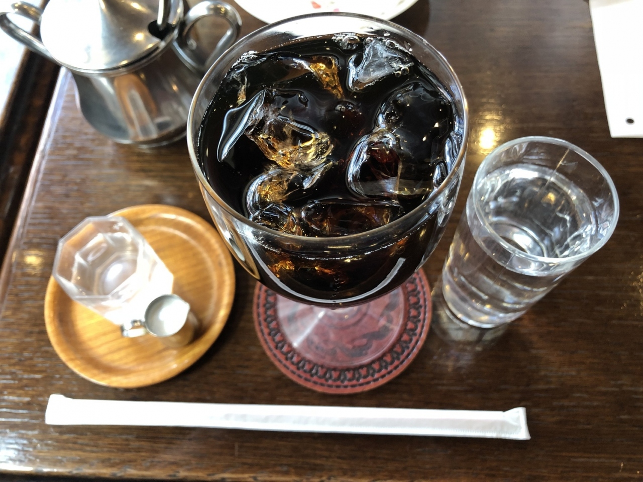 成城学園前駅近くにある喫茶店です。平日の午後、知人との打ち合わせで訪れました。駅前にはスタバや上島珈琲店などもありますが、こちらのお店は比較的空いていて、わりとゆったり座れる四人がけのテーブル席があるので、今回のような時に便利です。注文はアイスコーヒーを。ミルクとガムシロが別の容器で提供されます。味はやや薄味でさっぱりした印象でした。周りを気にせず会話できたのも良かったですね。