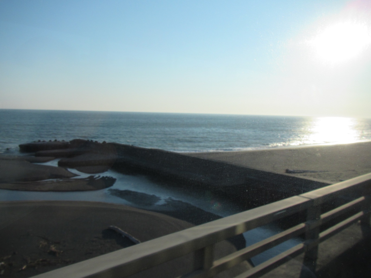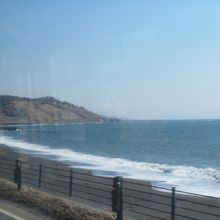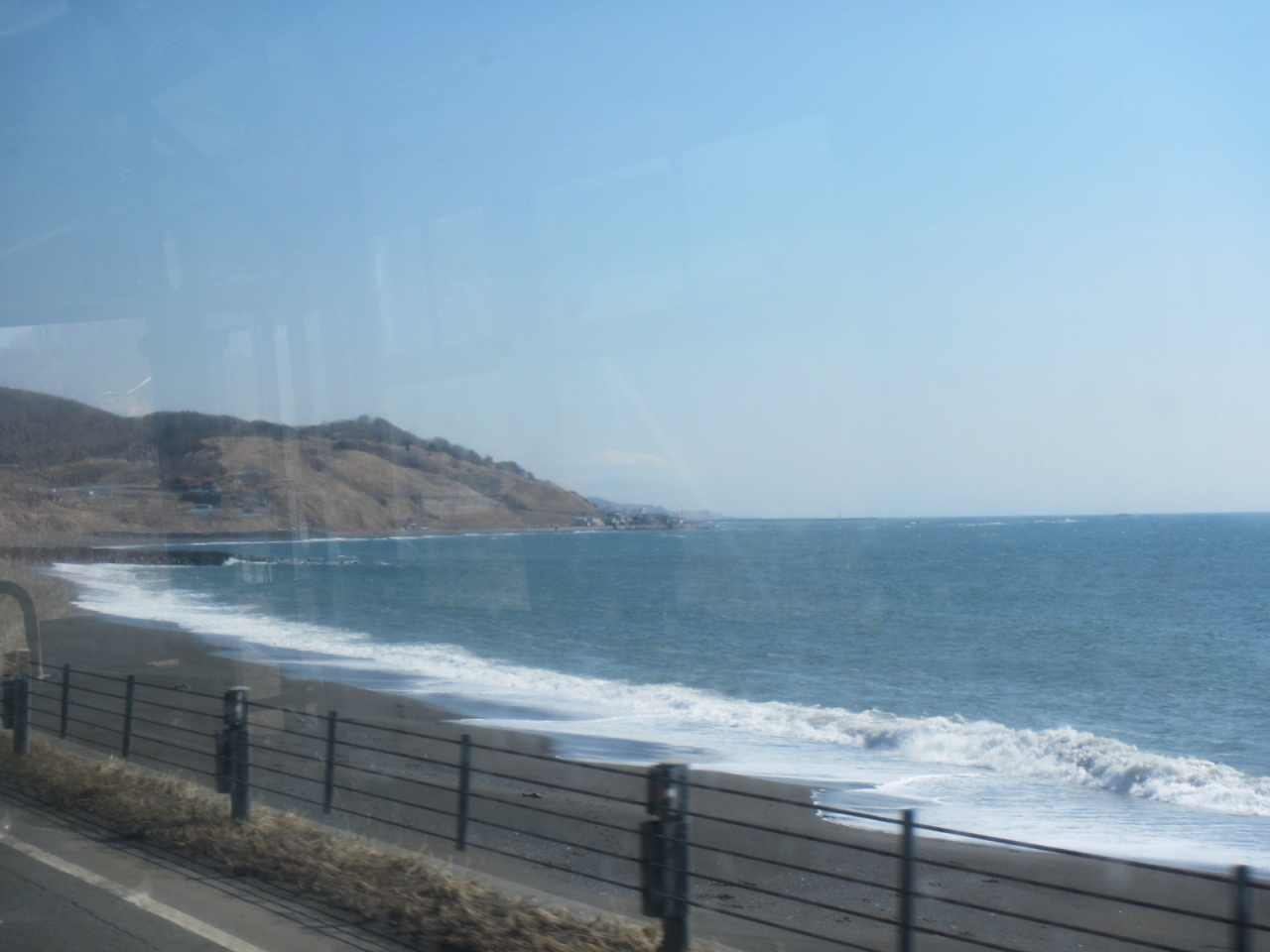 付近の内陸を走る日高線に対し、代行バスは海沿いの国道を走るようになったので、バス車窓から絵笛海岸を見られるようになりました。