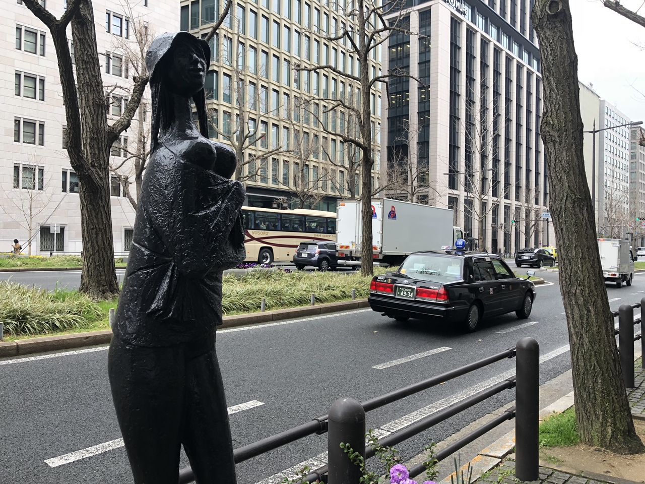 以前はしらなくて、たまになにかあるなというくらいの認識だったのですが、今回は彫刻も楽しみに御堂筋を散策しました。ひとつひとつに詳しい解説などが書かれているわけではないので詳細はよくわかりませんが、あちこちに花も飾られて、御堂筋の雰囲気アップに貢献していると思います。