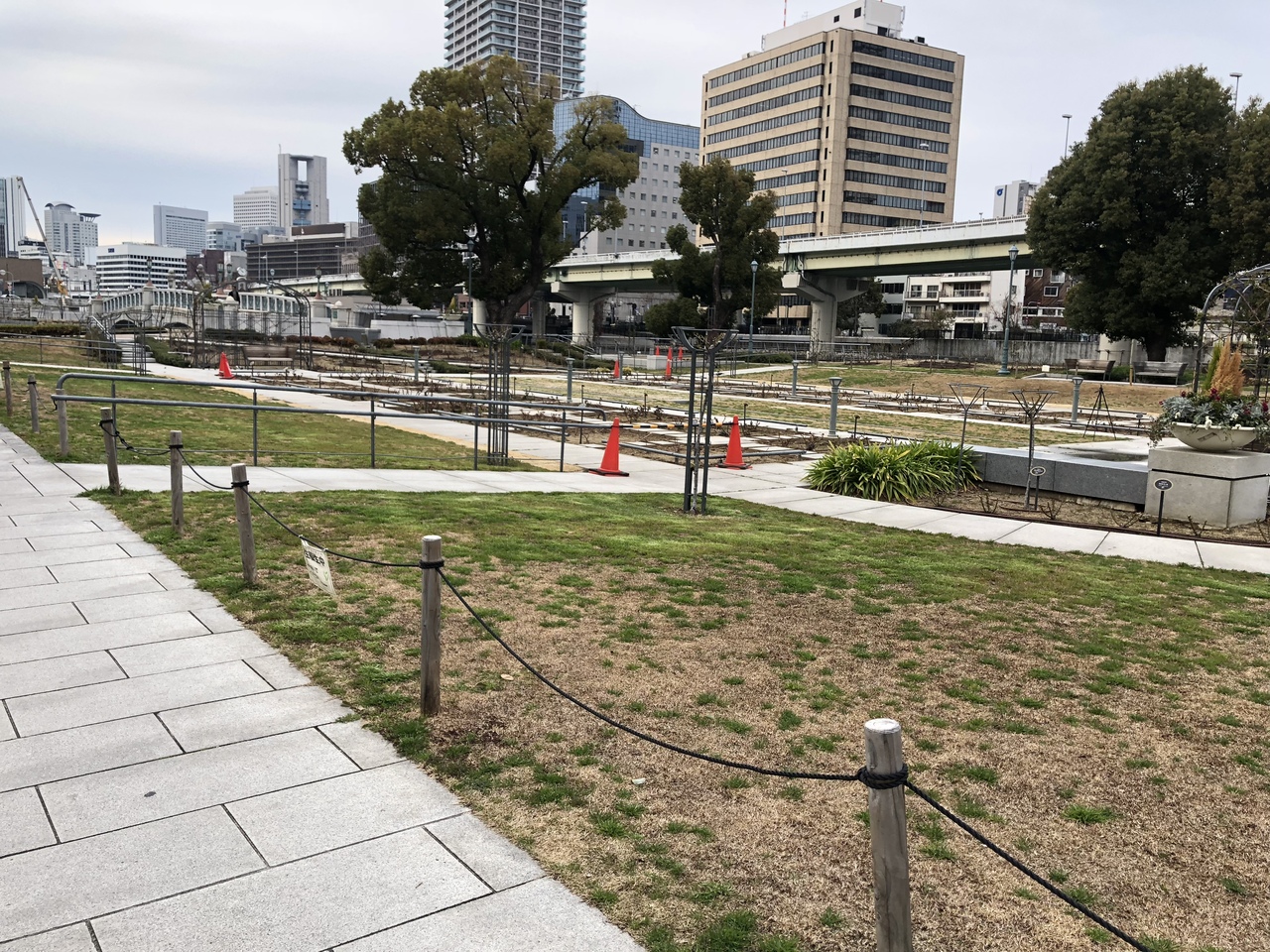 ひろびろとした庭園に、種類ごとにきれいに区分けされた株がうえられていて、冬でまだ刈り込まれた状態でもきれいなバラ園だなと思いました。
