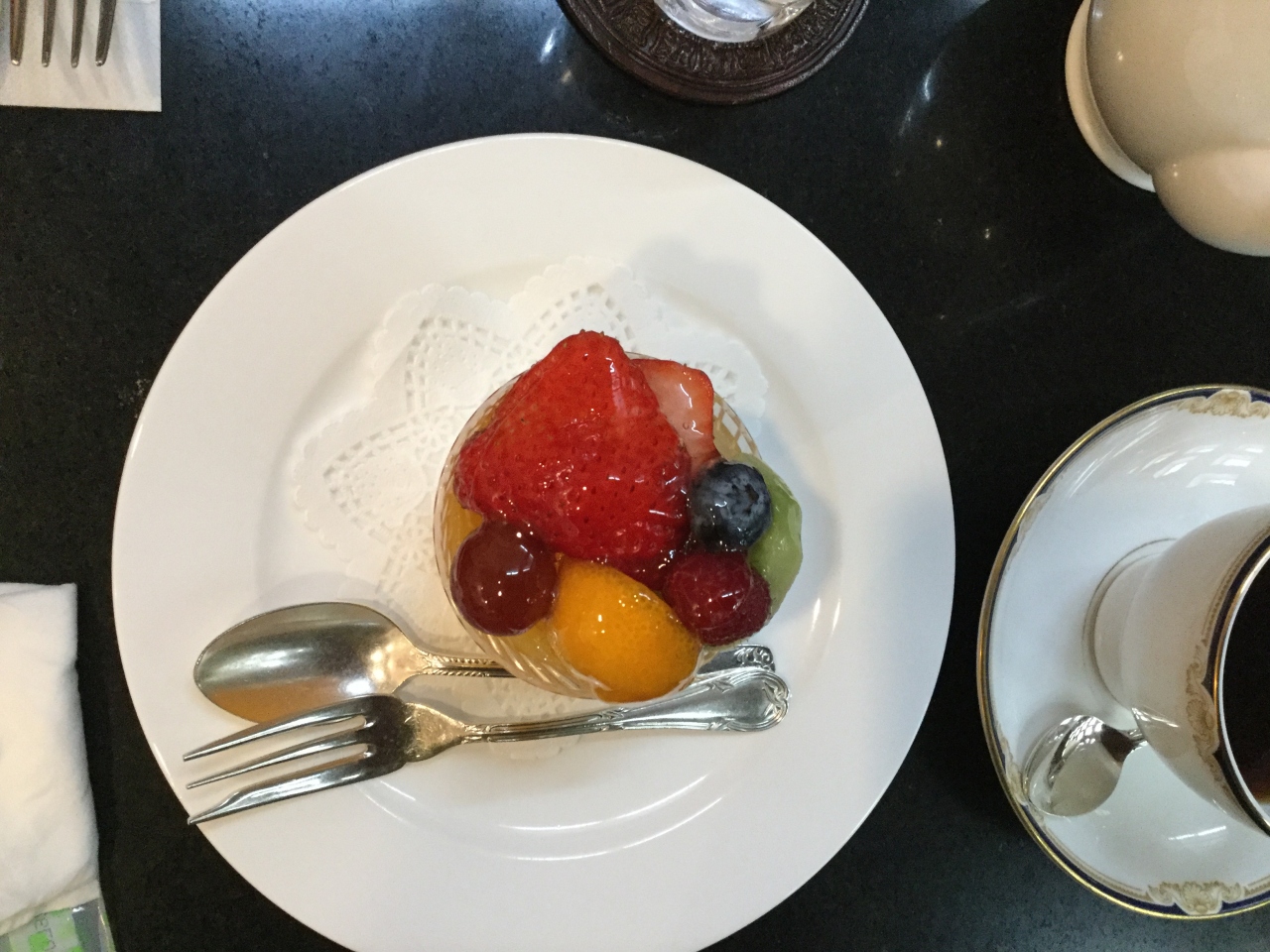 飾りのフルーツは、フレッシュ、コンポート、シロップ漬けとそれぞれ異なる方法で味付けされていました。