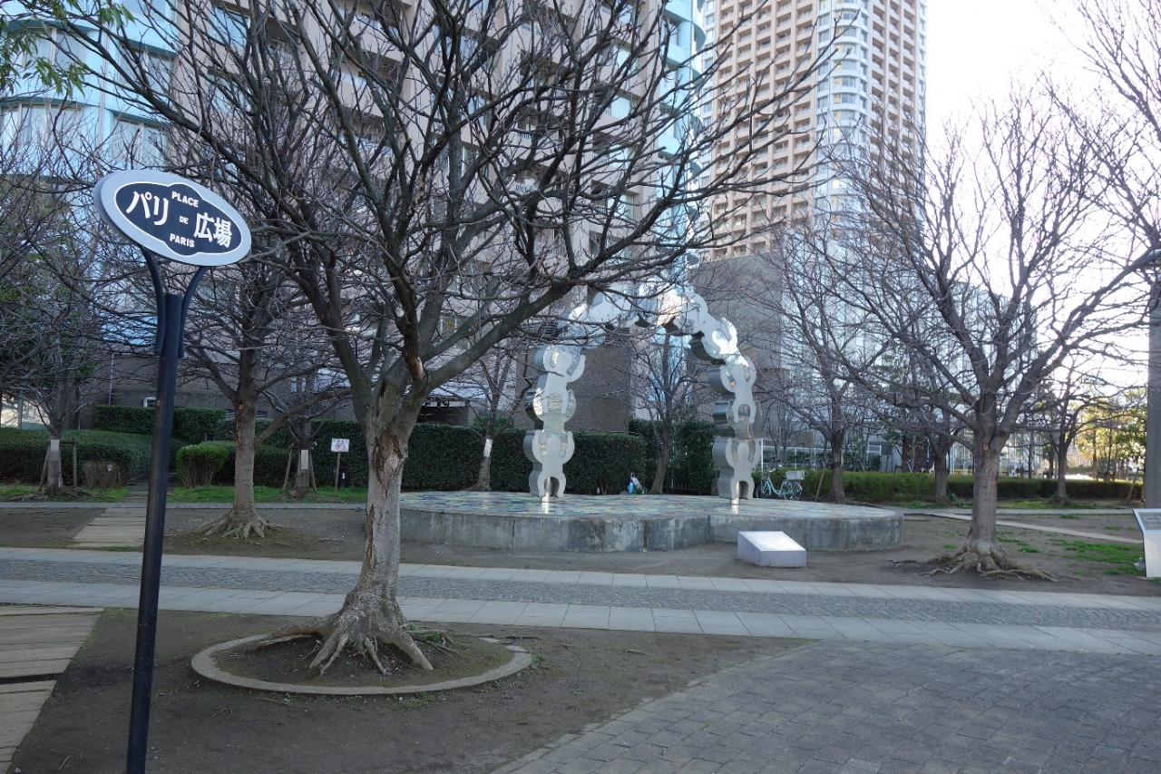 月島や佃島あたりのエリアを散策中こちらに立ち寄りました。石川島公園の北側に有るパリ広場にはオブジェなどが置かれ、隅田川や対岸の眺めが良い開放的な場所でした。隅田川はパリのセーヌ川と友好河川となっているそうです。