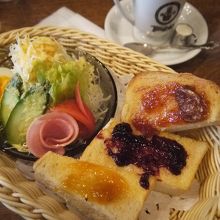 自家製のパンによるトーストは、3つにカットされ、それぞれにバターと、種類の異なるジャムが塗られていた。ジャムを塗ってもらいたくない場合、注文の際に告げればよい。