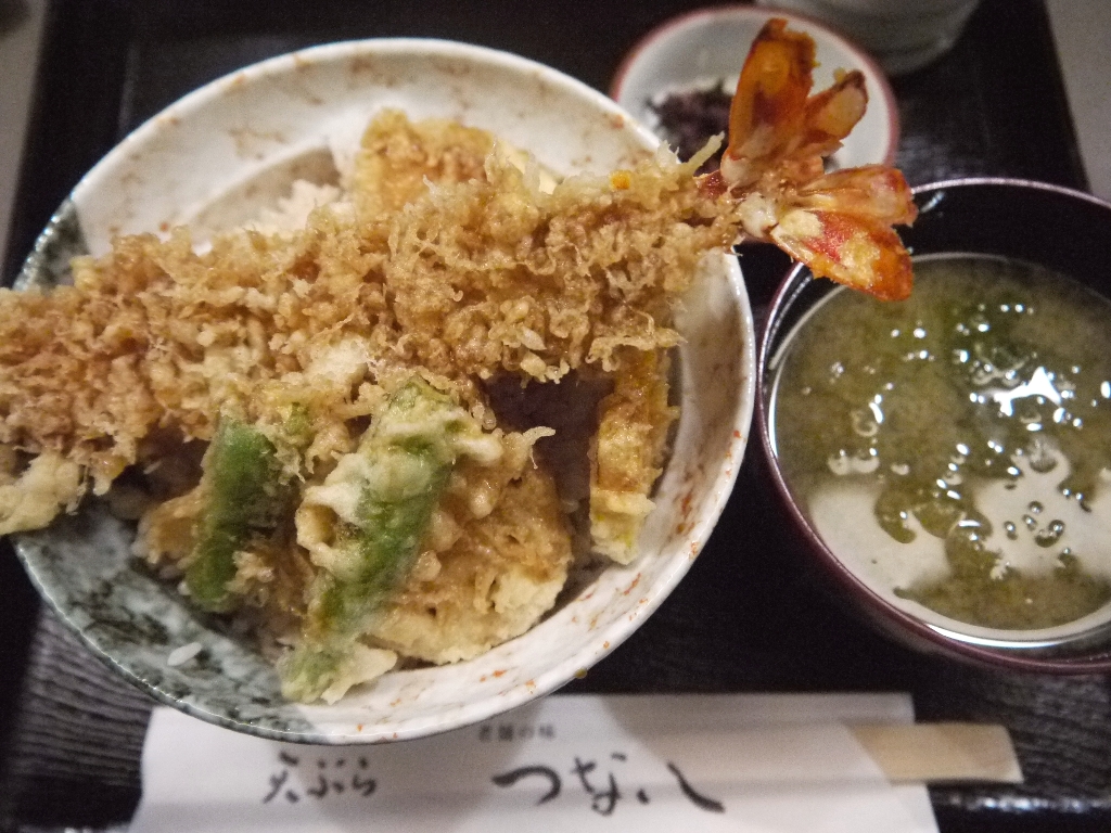 その名の通り、海老は巨大で、小さくない丼からはみ出していた。