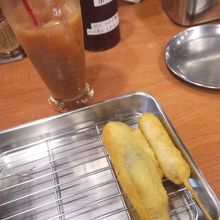 よくマスコミに取り上げられている様に、口を付けた串カツのタレの二度漬けは禁止、となっている(当然といえば当然だが)。