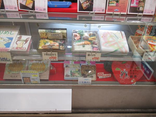駅弁発祥の地(諸説あり)と言われる宇都宮駅ですが、店舗横の壁には「駅弁の発祥地」と書かれていました。
