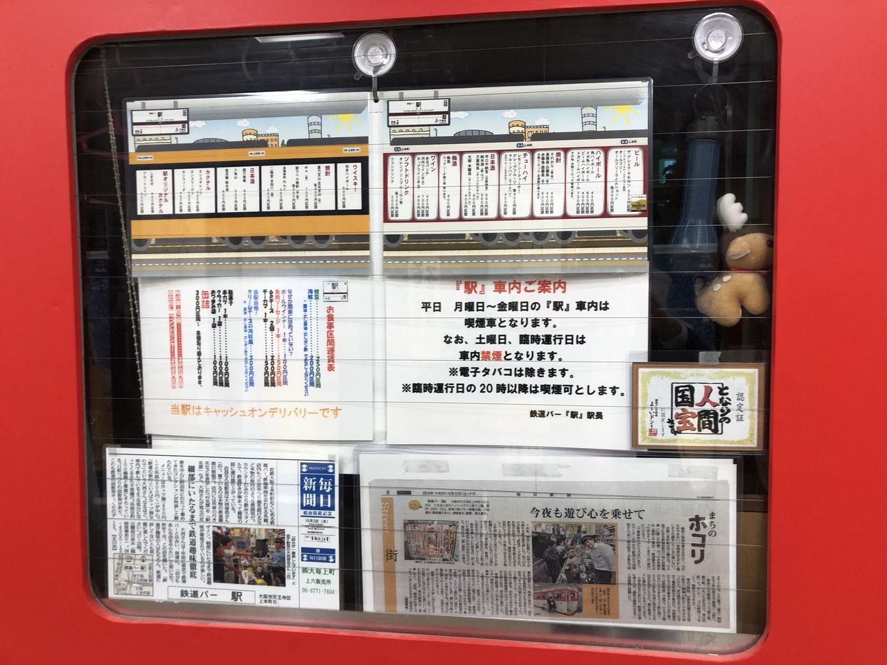 素面から千鳥足へ行く路線の途中にある駅で面白い鉄道グッズの揃った店内では楽しく美味しいお酒が飲めます。