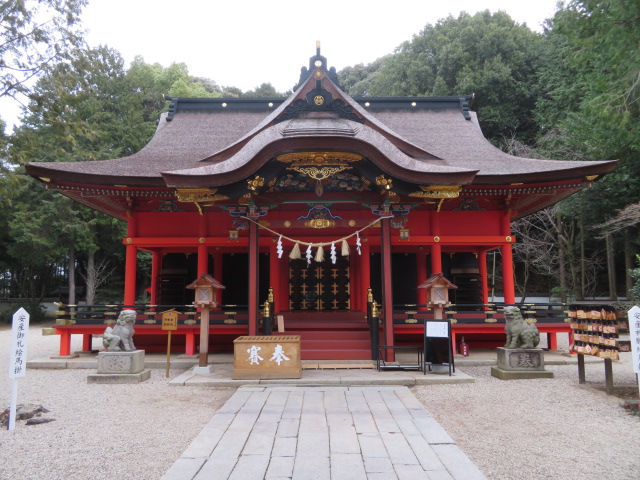 宿泊した岡崎セントラルホテルから近いので行ってみました、名鉄の東岡崎駅南口から5分位で行けます、松並木がある長い参道があります、急な階段を登ると朱塗りの立派な権現造の楼門があります、境内には国の重要文化財に指定されている寛永11年(1634年)に出来た本殿や神供所があり見所です、朝に行ったので静かな境内を散策出来ました。
